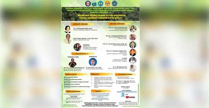 ZONASULTRA.COM, KENDARI- Fakultas Kehutanan dan Ilmu Lingkungan (FHIL) Universitas Halu Oleo (UHO) Kendari mengadakan seminar nasional dan komunitas manajemen hutan Indonesia (Komhindo) VI, dirangkaikan dengan kongres V yang akan digelar selama dua hari 29-30 Juni 2021.