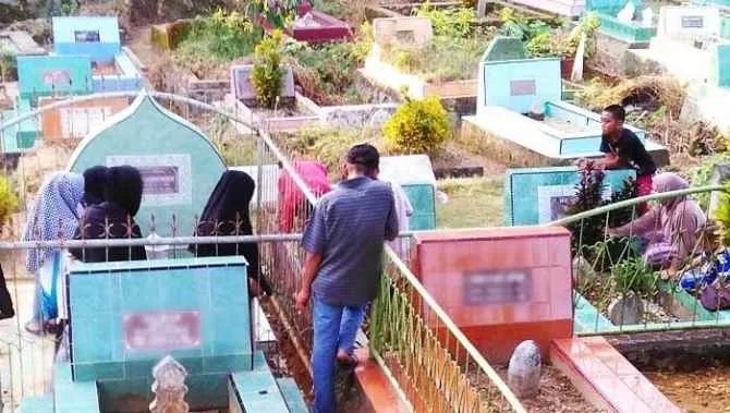 ZIARAH KUBUR – Anak-anak yang tinggal disekitaran TPA Punggaluku yang mengambil hikmah dari tradisi ini. Mereka membantu membersihkan makam kerabat ataupun saudara para peziarah yang datang. Pendapatan yang mereka peroleh bisa mencapai 10 kali lipat dari hari biasa. (Hatta/ZONASULTRA.COM)