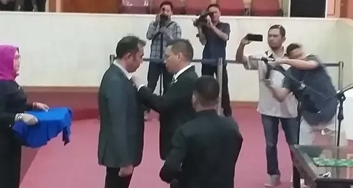 PELANTIKAN DPRD - Abdul Asis dilantik sebagai Anggota DPRD Provinsi melalui rapat paripurna di DPRD Sulawesi Tenggara (Sultra), Rabu (27/3/2019). Asis merupakan Pengganti Pengganti Antar Waktu (PAW) almarhum Joni Syamsuddin. (Muhamad Taslim Dalma/ZONASULTRA.COM)