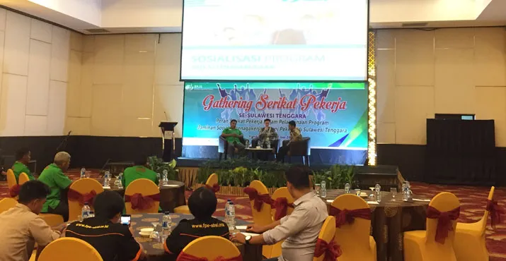 ZONASULTRA.COM, KENDARI – Badan Penyelenggara Jaminan Sosial (BPJS) Ketenagakerjaan menggelar gathering dengan serikat pekerja se-Sulawesi Tenggara (Sultra) dan Sulawesi Tengah (Sulteng), Senin (3/12/2018) di Grand Claro Hotel Kendari.