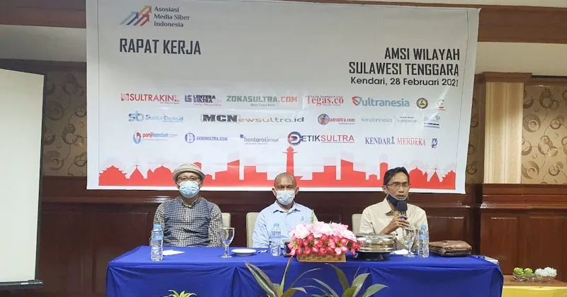 ZONASULTRA.COM, KENDARI – Asosiasi Media Siber Indonesia (AMSI) Sulawesi Tenggara (Sultra) sukses menggelar rapat kerja (raker) untuk pertama kali di salah satu hotel Kendari, Minggu (28/2/2021). Selain mendorong penguatan bisnis dan kualitas produk jurnalistik media siber, dalam raker itu juga dilakukan penataan organisasi AMSI.