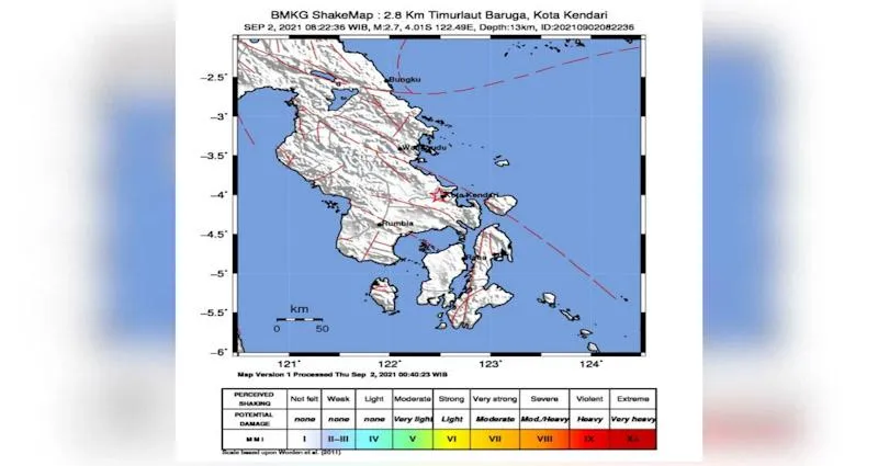“Kota Kendari kembali di guncang gempa tektonik pada hari kamis, 02 September 2021, pukul 08:22:36 WITA, di sebelah TimurLaut Baruga,” ucap Rudin dalam keterangan tertulisnya pada Kamis (2/9/2021).