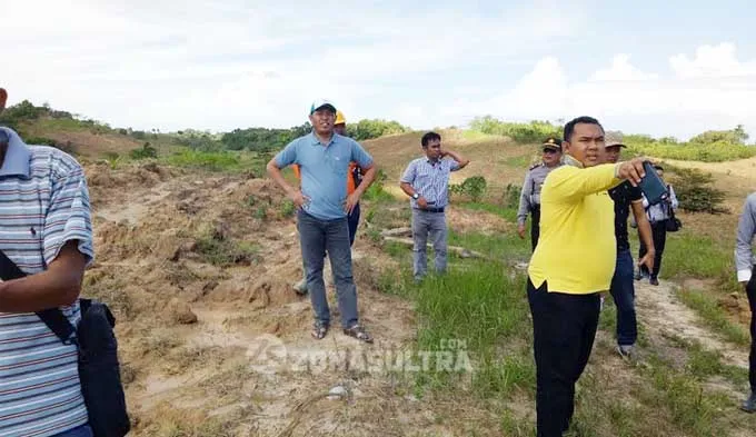 PROGRAM KEMENTAN : Korwil Gempita Sultra bersama tim berifikasi lahan Bank Sultra meninjau langsung lahan yang akan ditanami jagung, Rabu (9/5/2017). Gempita mengandeng bank lokal terbesar di Sultra itu untuk memodali petani. (Foto Rustam/ZONASULTRA.COM)