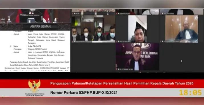 ZONASULTRA.COM,KENDARI- Mahkamah Konstitusi (MK) memutuskan tidak menerima gugatan pasangan calon (Paslon) nomor urut 2 Rajiun Tumada-La Pili dalam sidang putusan sengketa Pemilihan kepala daerah (Pilkada) Kabupaten Muna 2020 lalu.