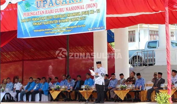 Hal itu disampaikan Bupati Konawe, Kery Saiful Konggoasa dalam upacara peringatan Hari Guru Nasional dan hari Persatuan Guru Republik Indonesia (PGRI) di pelataran kantor Bupati, Senin (27/11/2017)