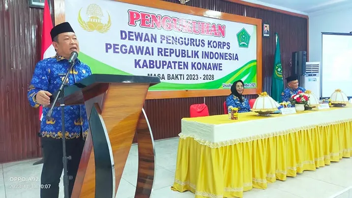 ” Oleh karena itu, pengukuhan Dewan Pengurus Korpri Kabupaten Konawe menjadi penting untuk dijadikan momentum solidaritas dan penguatan organisasi pada jajaran Korpri di wilayah Provinsi sultra, “katanya.