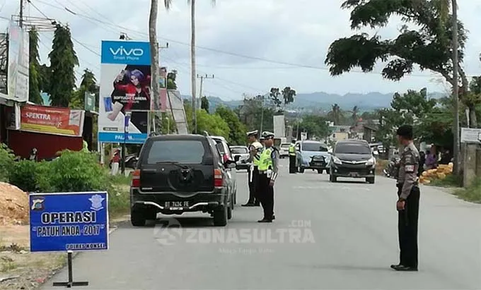 Hari Pertama Operasi Patuh, 18 Pelanggar Kena Tilang Polres Konsel OPERASI PATUH – kegiatan satuan lalulintas polres konsel saat melakukan giat operasi patuh hari ini di depan SMPN 2 Konsel di kecamatan puunggaluku, Selasa (9/5/2017). Tampak personil kepolisian sedang memeriksa para pengendara yang melintas di wilayah itu. (Erik Ari Prabowo/ZONASULTRA.COM)