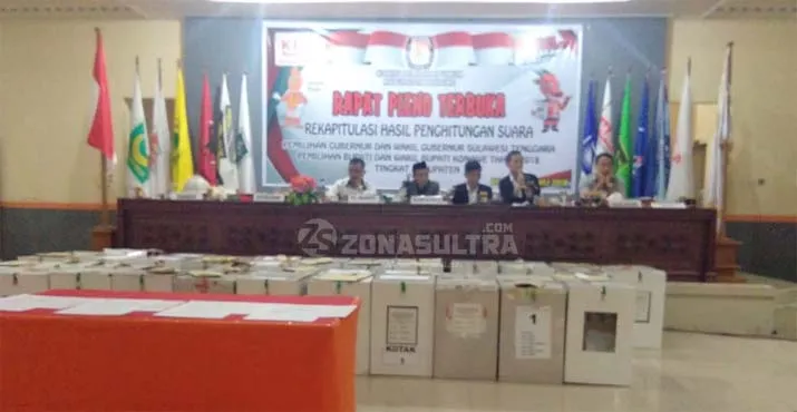 Kata dia, rapat pleno rekapitulasi yang dilaksanakan di salah satu hotel di Unaaha ini hanya dihadiri oleh dua saksi pasangan calon, yakni saksi pasangan calon nomor urut 1 (Ali Mazi-Lukman Abunawas) dan saksi paslon nomor urut 3 (Rusda-Safei). Sementara saksi Paslon nomor urut 2 (Asrun-Hugua) hingga berakhirnya rapat pelono tidak hadir.