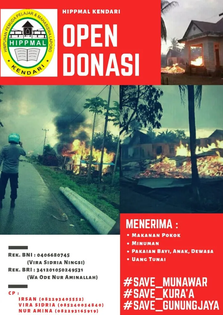 Jenis bantuan yang akan diakomodir sendiri berupa uang tunai, sembako, maupun pakaian. Bantuan bisa dibawa langsung ke sekretariat HIPMA Laporo yang terletak di Lorong Pelangi, depan kampus baru UHO, atau bisa juga via transfer melalui rekening sebagaimana tertera pada flyer.
