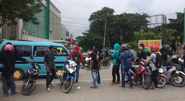 ZONASULTRA.COM, KENDARI – Saling dorong dan adu mulut antara mahasiswa dan karyawan hotel Plaza In Kendari, nyaris tidak terhindarkan, Rabu (10/5/2017). Massa yang tergabung dalam Lingkar Studi Mahasiswa (Limusa) Universitas Halu Oleo Kendari mencoba membakar ban didepan halaman hotel, saat menggelar aksi unjuk rasa di Hotel Plaza In Kendari terkait masalah Analisis Dampak Lalulintas (Andalalin) yang diduga tidak dimiliki oleh hotel tersebut.