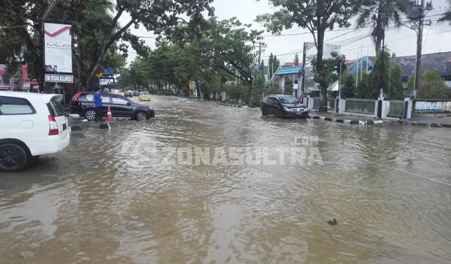 Hujan 30 Menit, Sejumlah Ruas Jalan Protokol Kendari Tergenang