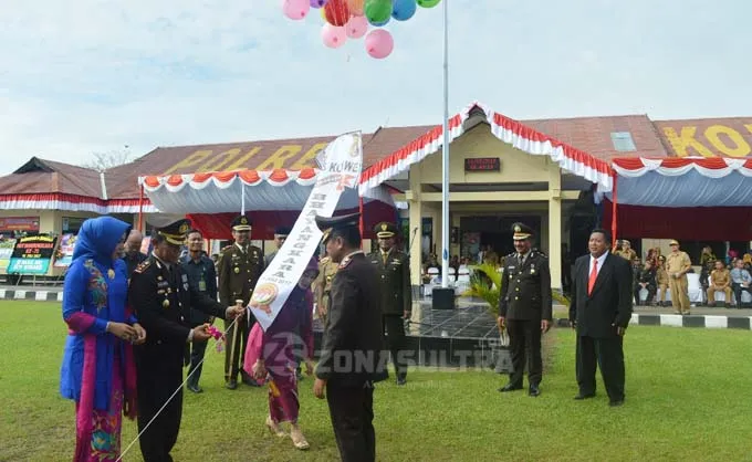 Upacara perayaan HUT Bhayangkara ke 71 di Polres Konawe kali ini turut dihadari unsur Muspida Konawe serta dirangkaikan dengan berbagai kegiatan perlombaan. (C)