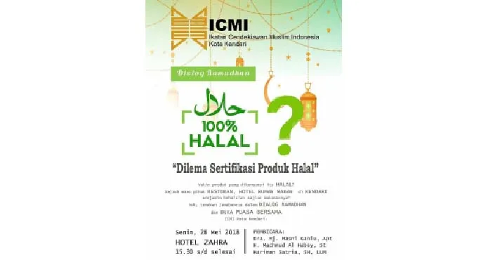 ZONASULTRA.COM, KENDARI – Ikatan Cendekiawan Muslim Indonesia (ICMI) Kota Kendari akan menggelar Dialog Ramadan dengan tema “Dilema Sertifikasi Produk Halal”. Kegiatan ini akan diselenggarakan di Hotel Zahra, Kendari, Senin (28/5/2018).