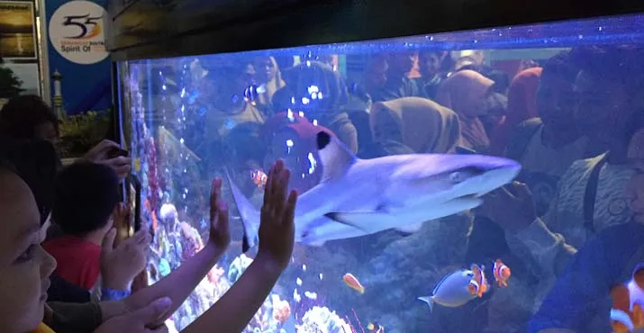 Ikan yang berada di akuarium ini berukuran sekitar 45 cm. Berdasarkan pantauan zonasultra.id terlihat begitu banyak anak-anak yang tertarik melihat secara dekat penampakan ikan hiu sirip hitam tersebut.
