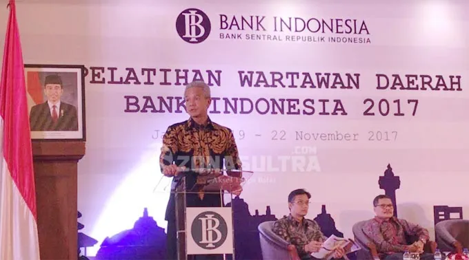 PELATIHAN BI : Gubernur Jawa Tengah (Jateng) Ganjar Pranowo saat menjadi narasumber dalam pelatihan wartawan daerah 2017 yang diselenggarakan Bank Indonesia di Jakarta, Senin (20/11/2017). (Sitti Nurmalasari/ZONASULTRA.COM)