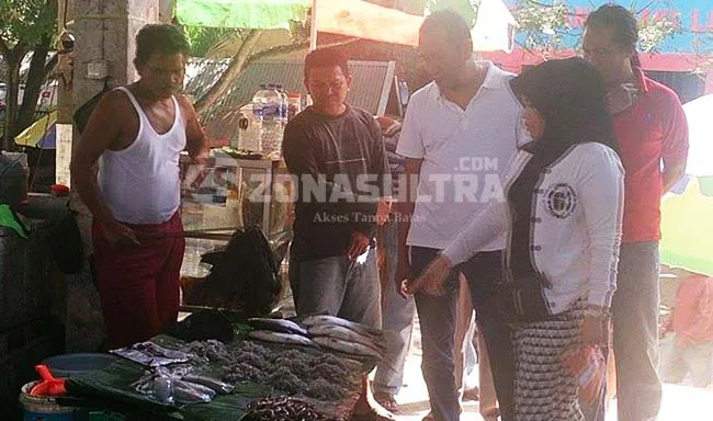 BLUSUKAN - Bakal calon Wali Kota Kendari, Ishak Ismail atau Anak Lorongnya Kendari berinteraksi dengan para pedagang di Pasar PKL Kendari. (KIKI/ZONASULTRA.COM)