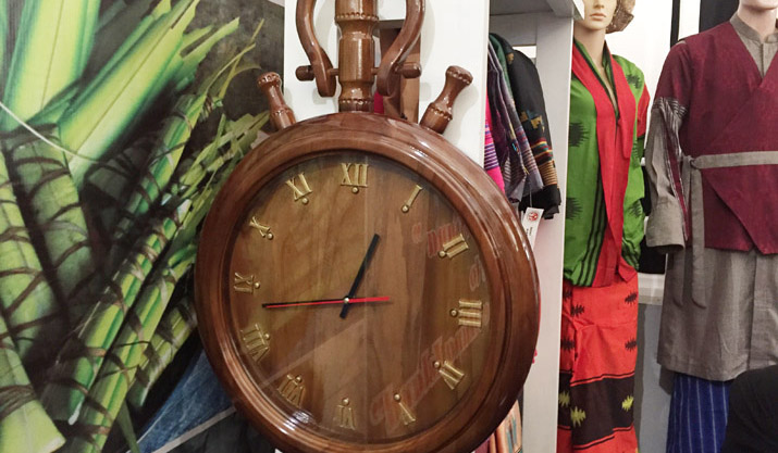 Jam dinding jati dapat Anda temui di stand Kabupaten Muna, sebagai daerah penghasil jati wajar jika Muna memamerkan hasil kerajinan dari Jati.
