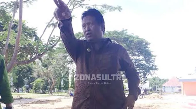 TINJAU LOKASI – Bupati Muna, LM Rusman Emba meninjau lokasi perayaan pergantian Tahun Baru 2018 di pelataran Joging Track, Jalan Bay Pass Kota Raha, Sabtu (30/12/2017). (Kasman/ZONASULTRA.COM)