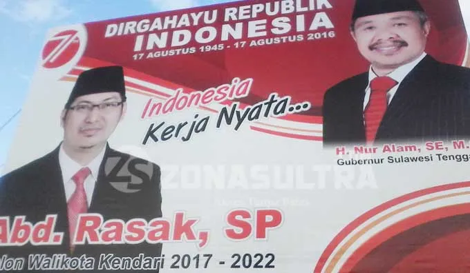 ZONASULTRA.COM, KENDARI – Kader PAN Abdul Rasak tetap memasukan gambar Nur Alam dalam baliho sosiasasinya yang akan maju dalam pemilihan Walikota Kendari 2017. Padahal saat ini Nur Alam telah menyandang status tersangka oleh KPK.
