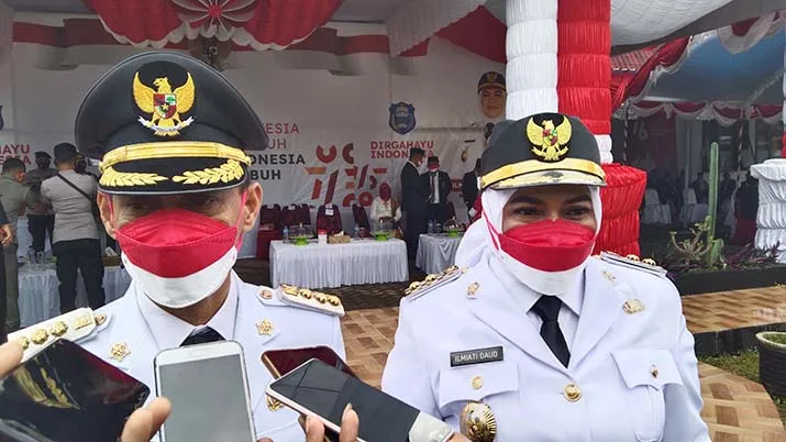 Bupati Wakatobi Haliana didampingi Wakil Bupati Ilmiati Daud usai memimpin upacara HUT RI ke 76 di halaman Sekretariat daerah, Kecamatan Wangiwangi. (Nova Ely Surya/ZONASULTRA.COM)