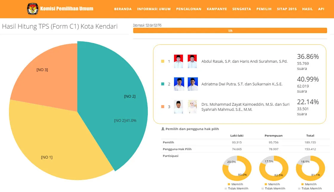Untuk diketahui jumlah kecamatan yang ada di kota Kendari 11 kecamatan dengan jumlah TPS 520.