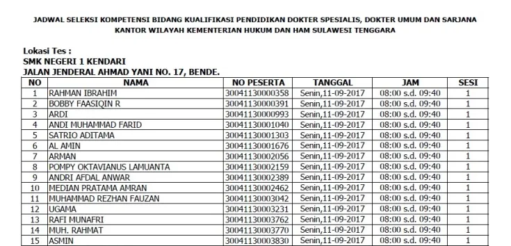 Kepala Kanwil Kemenkum dan HAM Sultra Sofyan mengatakan, data ini merupakan hasil final dari pusat dan menjadi rujukan informasi terbaru untuk jadwal ujian lulusan S-1.
