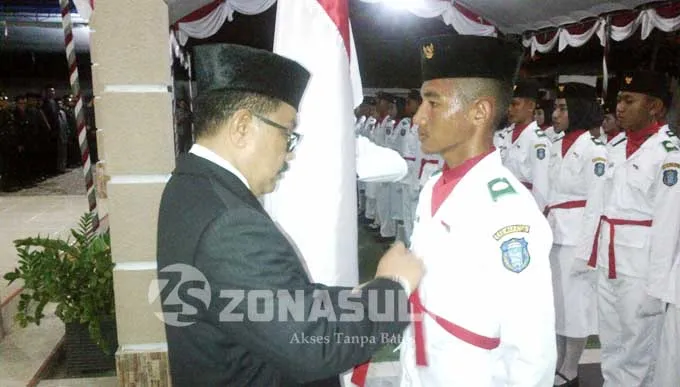 ZONASULTRA.COM, WANGI-WANGI – Sebanyak 71 orang sisiwa-siswi tingkat Sekolah Menangah Atas (SMA) yang tergabung dalam kelompok Pasukan Pengibar Bendera (Paskibra) yang akan bertugas pada upacara peringatan Hari Ulang Tahun Republik Indonesia (HUT RI) ke – 71 Tahun 2016 di Kabupaten Wakatobi resmi dikukuhkan Bupati Arhawi Ruda, Selasa (16/8/2016) malam di halaman eks Runah Jabatan (Rujab) Bupati Wakatobi.