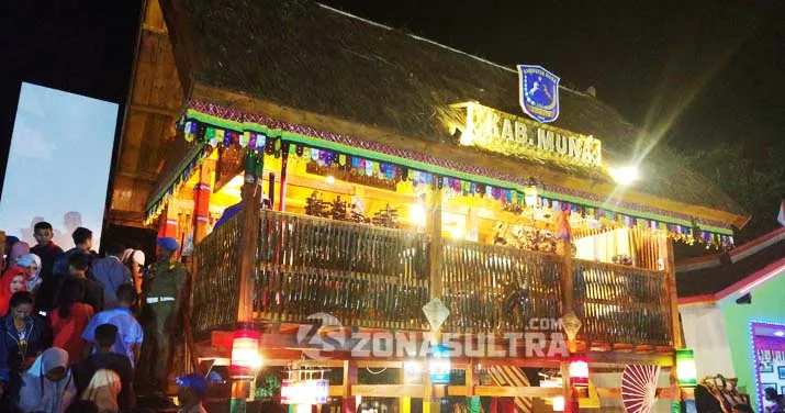 HUT SULTRA – Stand Kabupaten Muna pada perayaaan Halo Sultra ke-10. Pemerintah Kabupaten Muna sukses meraih prestasi pada perayaan Halo Sultra ke-10 dalam rangka memperingati HUT Sultra ke-53 tahun, 22-29 April 2017, Sabtu (29/4/2017) malam. (Ilham Surahmin/ZONASULTRA.COM)