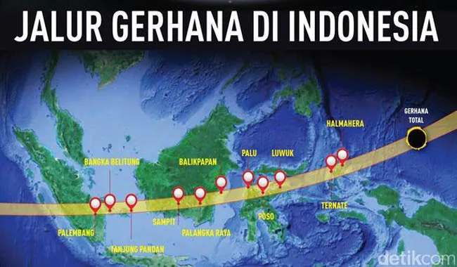Inilah Kota Yang Dapat Menyaksikan Gerhana Matahari Total di Indonesia