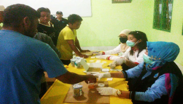 TES URIN : Ratusan penghuni Rutan Kelas II Kendari menjalani tes urin, Sabtu (5/3/2016). Dalam tes urin yang dilakukan Kementeria Hukum dan HAM Sulawesi Tenggara (Sultra) ini, ditemukan 31 warga Rutan terindikasi mengkomsumsi Narkoba. RANDI/ZONASULTRA.COM