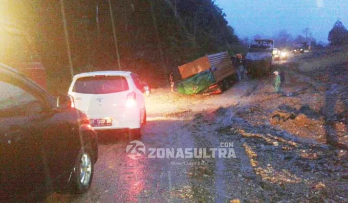 Dari pantauan awak Zonasultra.com yang berada di lokasi, kejadian tersebut akibat hujan deras yang turun sejak siang tadi, sehingga membuat jalan yang sementara dalam perbaikan sekitar 5 kilometer itu rusak parah dan berlumpur.