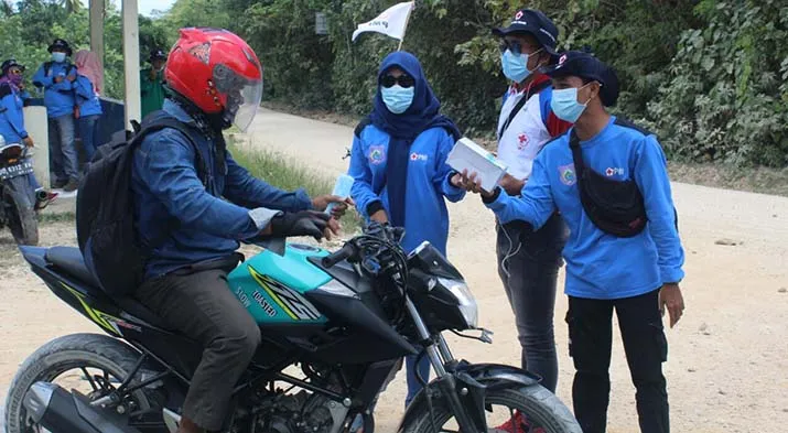 ZONASULTRA.COM, BURANGA – Palang Merah Indonesia (PMI) Kabupaten Buton Utara (Butur) bekerjasama dengan dinas kesehatan setempat melakukan aksi sosial dengan membagikan masker gratis kepada para pengendara roda dua dan empat yang melintas.