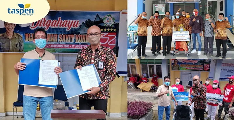 ZONASULTRA.COM, KENDARI – Branch Manager PT Taspen Kendari Fuji WidyaRachmadi, resmi menandatangani Memorandum of Understanding (MoU) dengan BLUD RSUD Konawe tentang Program Jaminan Kecelakaan Kerja (JKK) dan Jaminan Kematian (JKM) kepada Karyawan non ASN yang bekerja di RSUD Konawe. Kegiatan ini dirangkaikan dengan peringatan HUT RSUD Konawe yang ke-32.