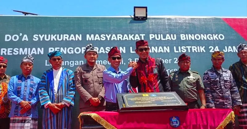 Realisasi listrik 24 jam di Pulau Binongko ini ditandai dengan dibunyikannya sirine dan penandatanganan prasasti bersama General Manager (GM) PLN Sulawesi Selatan, Tenggara dan Barat (Sulselrabar) Moch Andy Adchaminoerdi, dan Bupati Wakatobi Haliana yang berlangsung di pelataran rumah jabatan Camat Binongko, Kelurahan Rukuwa, Minggu (3/12/2023).