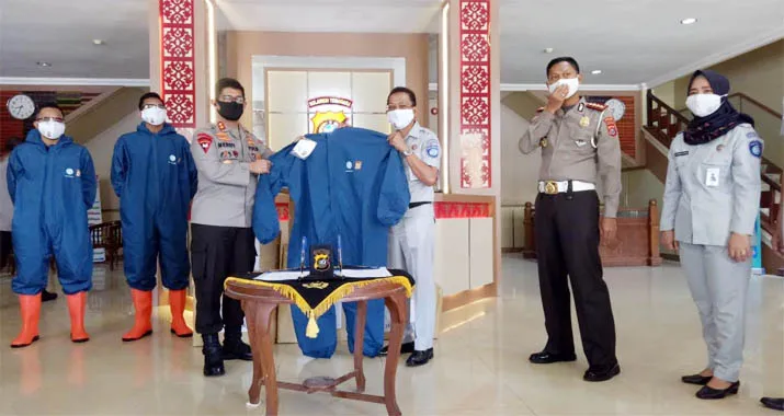 ZONASULTRA.COM, KENDARI – PT Jasa Raharja cabang Sulawesi Tenggara (Sultra) menyerahkan bantuan 50 alat pelindung diri (APD) set lengkap berupa hazmat, sepatu boot dan kacamata ke Kepolisian Daerah (Polda) Sultra, Rabu (10/6/2020).