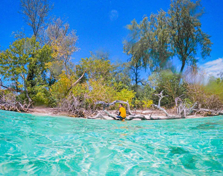 Pasir putih dengan air laut yang jernih menampakkan jelas degradasi birunya laut sehingga menambah keindahan pulau ini. Sekeliling pulau juga ditumbuhi berbagai jenis tanaman pohon, didominasi pinus yang berukuran cukup besar.