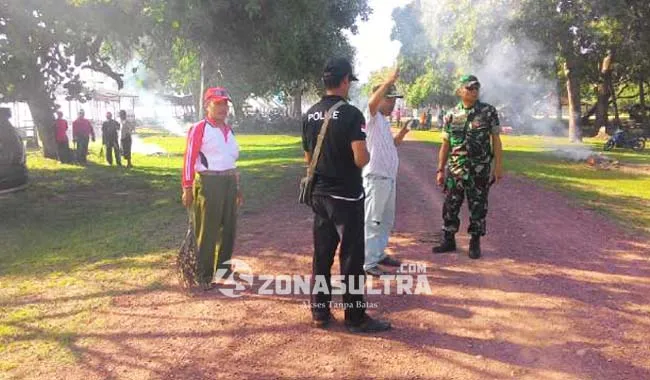KERJA BAKTITerlihat Kepala Dinas Pariwisata Konut, Yade Rianto bersama Danramil Lasolo, Kapten Inf, Djafruddin, dan Kepala Desa Taipa serta ratusan mayarakat Desa Taipa, Kecamatan Sawa, Kabupaten Konut, melakukan kerja bakti sosial diseluruh plataran pantai taipa, dalan rangka persiapan kedatangan kunjungan kerja Wali Kota Korea Selatan, Yeongwol pekan depan. (Jefri/ZONASULTRA.COM).