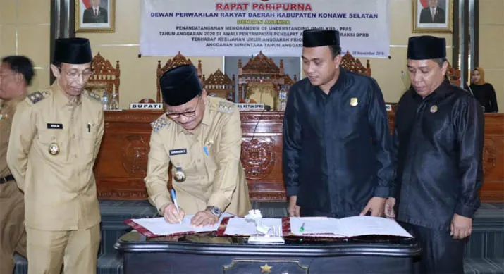 Surunuddin mengungkapkan hal itu saat menghadiri rapat paripurna penandatangan Mou KUA-PPAS tahun anggaran 2020 yang digelar di gedung paripurna DPRD Konsel, Selasa (26/11/2019).