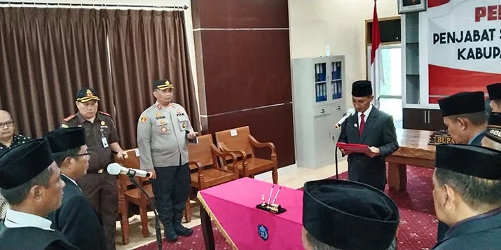 PELANTIKAN-Bupati Wakatobi Haliana saat membacakan sumpah jabatan Penjabat Sekda, disaksikan oleh Organisasi Perangkat Daerah (OPD), Forum Komunikasi Pimpinan Daerah (Forkopimda) dan sejumlah stakeholder di daerah setempat