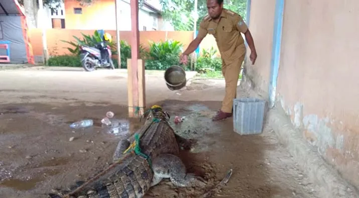 “Iya betul ada buaya ditangkap warga. Kronologinya, warga nelayan turun mencari ikan di kali dengan memasang pukat, saat kembali cek pukatnya dia kira ikan besar didapat pas dilihat ternyata Buaya. Untuk sementara ini buayanya kita amankan di kantor BPBD,”kata Sekretaris BPBD Konut, Lagulira.