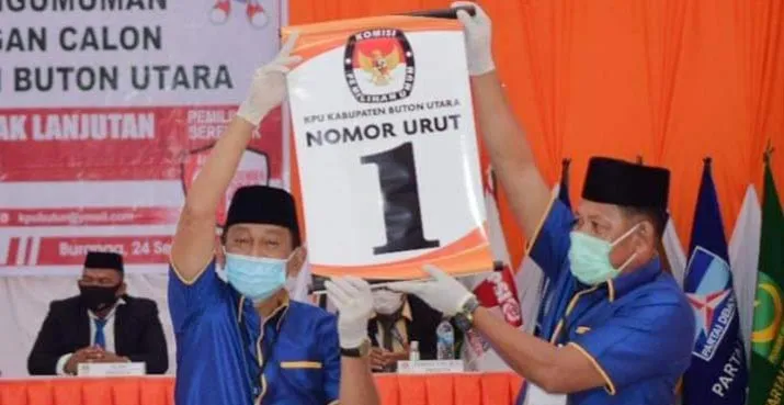 ZONASULTRA.COM, BURANGA– Pasangan Calon (Paslon) Bupati dan Wakil Bupati, Ridwan Zakariah – Ahali mendapatkan nomor urut 1 dalam pengundian nomor urut oleh Komisi Pemilihan Umum Daerah (KPUD) Buton Utara (Butur), Kamis (24/9/2020). RidwanZakariah menyebutkan angka tersebut sebagai tanda alam untuk merebut kemenangan pada pilkada 9 Desember 2020 mendatang.