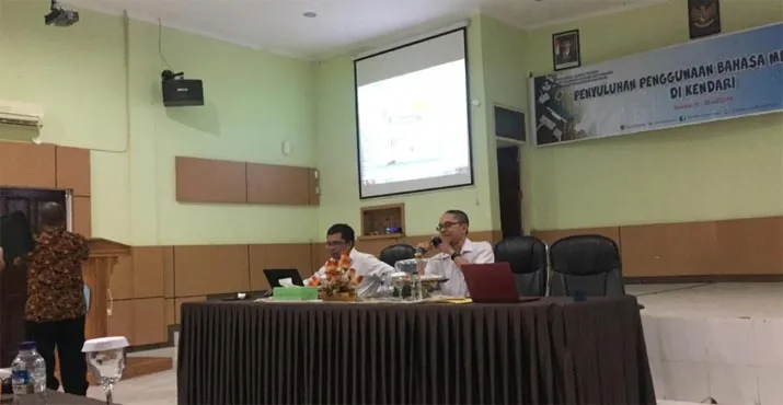 ZONASULTRA.COM, KENDARI – Kantor Bahasa Sulawesi Tenggara (Sultra) menggelar kegiatan penyuluhan bahasa Indonesia untuk media massa di Kendari, Kamis (11/7/2019). Kegiatan tersebut diikuti sebanyak 40 orang yang terdiri atas editor, wartawan, dan penulis teks media massa yang ada di Kota Kendari.