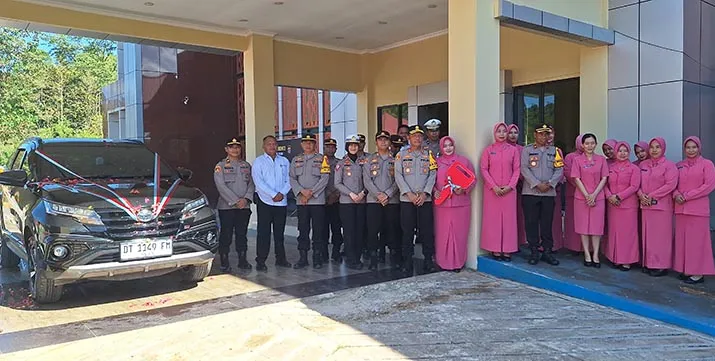 ZONASULTRA.ID, WANGGUDU- Kepala Kepolisian Resor (Kapolres) Konawe Utara (Konut) AKBP Priyo Utomo, menyerahkan kendaraan operasional roda empat kepada pengurus Bhayangkari cabang Konut di Lobi Mapolres Konut, Kelurahan Wanggudu, Kecamatan Asera, Kabupaten Konut, Senin (23/9/2024)