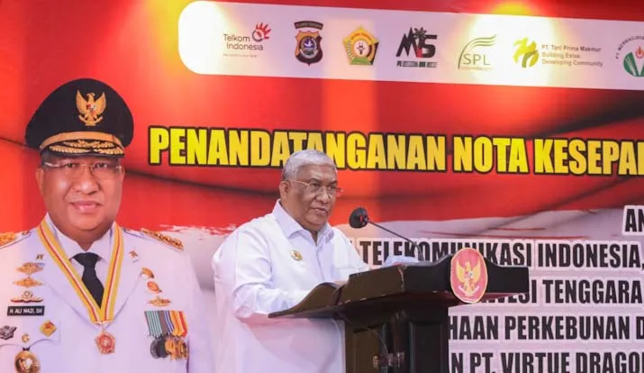 Hal tersebut disampaikan Gubernur Sultra, Ali Mazi dalam sambutannya di acara Penandatanganan Nota Kesepahaman (MoU) dan Perjanjian Kerja Sama (PKS) antara PT Telkom Indonesia Tbk Wilayah Sultra, Pemprov Sultra, Polda Sultra, perusahaan perkebunan di wilayah Sultra, dan PT Virtue Dragon Nickel Industrial Park di Rumah Jabatan (Rujab) Gubernur Sultra, Kamis (3/6/2021).
