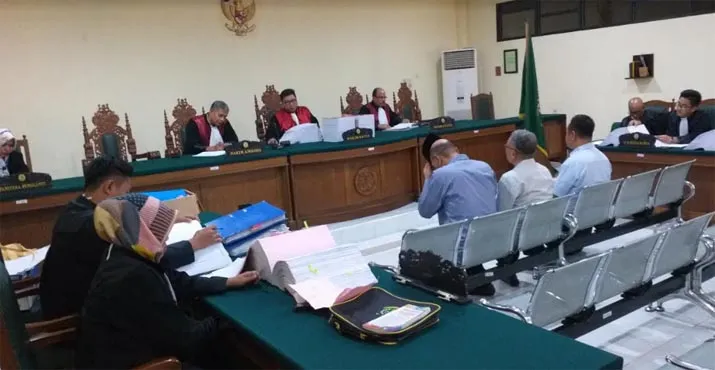 “Jadi kantornya dari 10 tahun ngga berubah itu,” tanya Hakim Ketua Andi Wahyudi. “Tidak pernah, dibersihkan saja pak,” jawab Dewi Saranani.