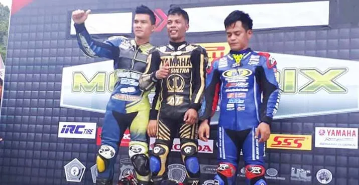 ZONASULTRA.COM, KENDARI – Pembalap andalan Sulawesi Tenggara Handy Tuahatu semakin memantapkan dirinya di klasemen pembalap kelas bebek 4 tak 125 CC tune up injeksi seeded (MP2) Kejuaraan Nasional (Kejurnas) Motoprix region V. Ini ditunjukkan dengan mencatatkan hattrick gelar juara di kelas tersebut.