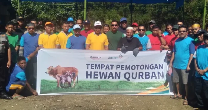ZONASULTRA.COM, KOLAKA – Keluarga besar karyawan PT Aneka Tambang (ANTAM) Unit Bisnis Pertambangan Nikel (UBPN) Sulawesi Tenggara (Sultra) menyalurkan daging kurban yang berasal dari 68 ekor sapi dan satu ekor kambing untuk masyarakat yang tersebar di semua kecamatan di kabupaten Kolaka.