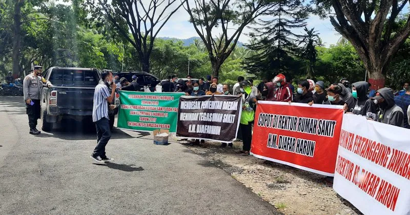 Salah satu perwakilan aksi Rial mengatakan, unjuk rasa ini merupakan gerakan peduli kemanusiaan sebab pihaknya menduga ada indikasi kelalaian manajemen dan pelayanan rumah sakit. Itu dilakukan oleh tenaga medis saat menangani pasien bernama Jusrianda.