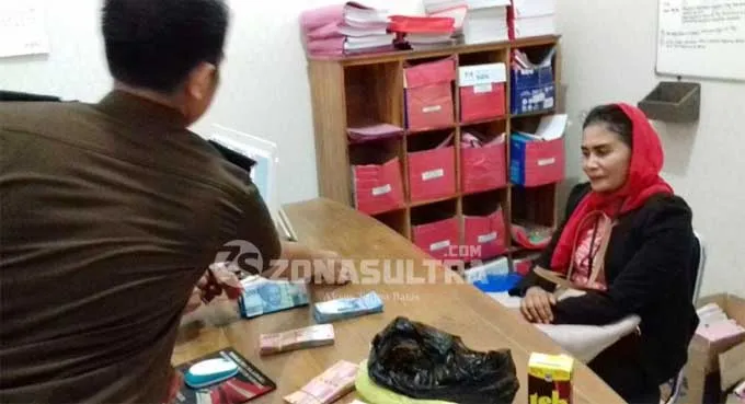 PENGEMBALIAN - Salah satu tersangka Pembangunan RSUD Konawe, menggembalikan kerugian negara pada item kegiatan pembangunan gedung operasi kepada penyidik Kejari Konawe, beberapa waktu lalu. (Foto: Dokumentasi Kejari Konawe)