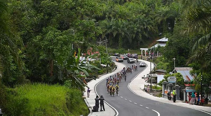 ZONASULTRA.COM, SOLOK SELATAN – Kemegahan seribu rumah gadang di Kabupaten Solok Selatan, mengkukuhkan Pebalap asal Venezuela Yonnatta Alejandro Monsalve menguasai etape kelima Tour de Singkarak 2017. Balapan etape terberat yang dimulai dari Kota Solok menuju Padang Aro, Solok Selatan, Sumatera Barat, Rabu (22/11) berhasil dicatat Monsalve dengan waktu tercepat 3 jam 57 menit dan 10 detik menempuh jarak 153,2 km.